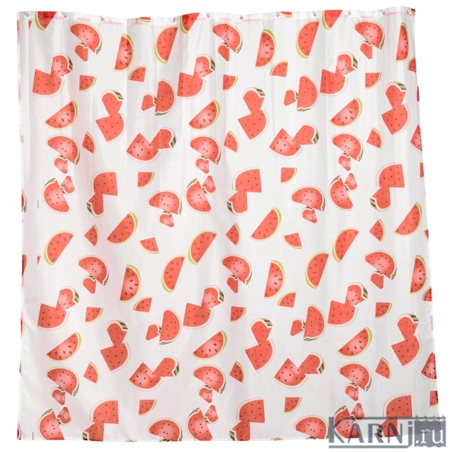 Занавеска из 100% полиэстера для ванны с 12 металлическими люверсами под кольца. Материал шторы обработан гидрофобной пропиткой, отталкивающей воду. Внизу по всей длине вшит шнур-утяжелитель.